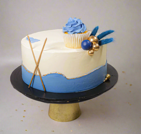 This cool blue cake combines minimalist style with a playful twist, featuring a cheeky cupcake perched on top to catch the eye. Bold yet simple, it offers a canvas for your boldest flavour choices and colour preferences. This cake makes a memorable statement at any celebration. Don’t miss out—customise your size, colour, and flavour to create a truly unique treat that refuses to blend in. Order now and own the spotlight.