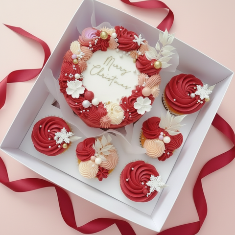 Unwrap the magic this Christmas with our Red Christmas Gift Box – a delightfully festive present that's almost too pretty to eat (almost!). This limited edition treasure features one show-stopping XL cupcake surrounded by five perfectly matched companions, each one a work of edible art with whimsical decorations that'll make taste buds and hearts sing. Whether you're treating yourself or surprising someone special, this gift-wrapped beauty delivers joy straight to doorsteps across London. Order ahead and let us handle the festive wrapping while you sit back and enjoy the sweet anticipation of gift-giving done right.